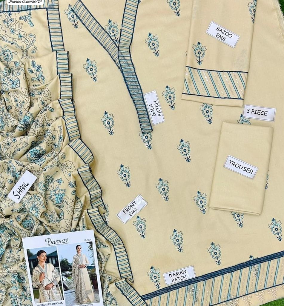 Bareeze Women's Unstitched Embroidered Dhanak Winter Suit